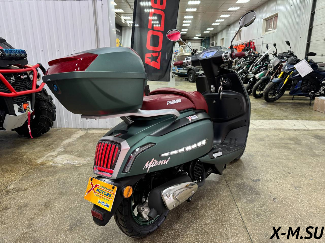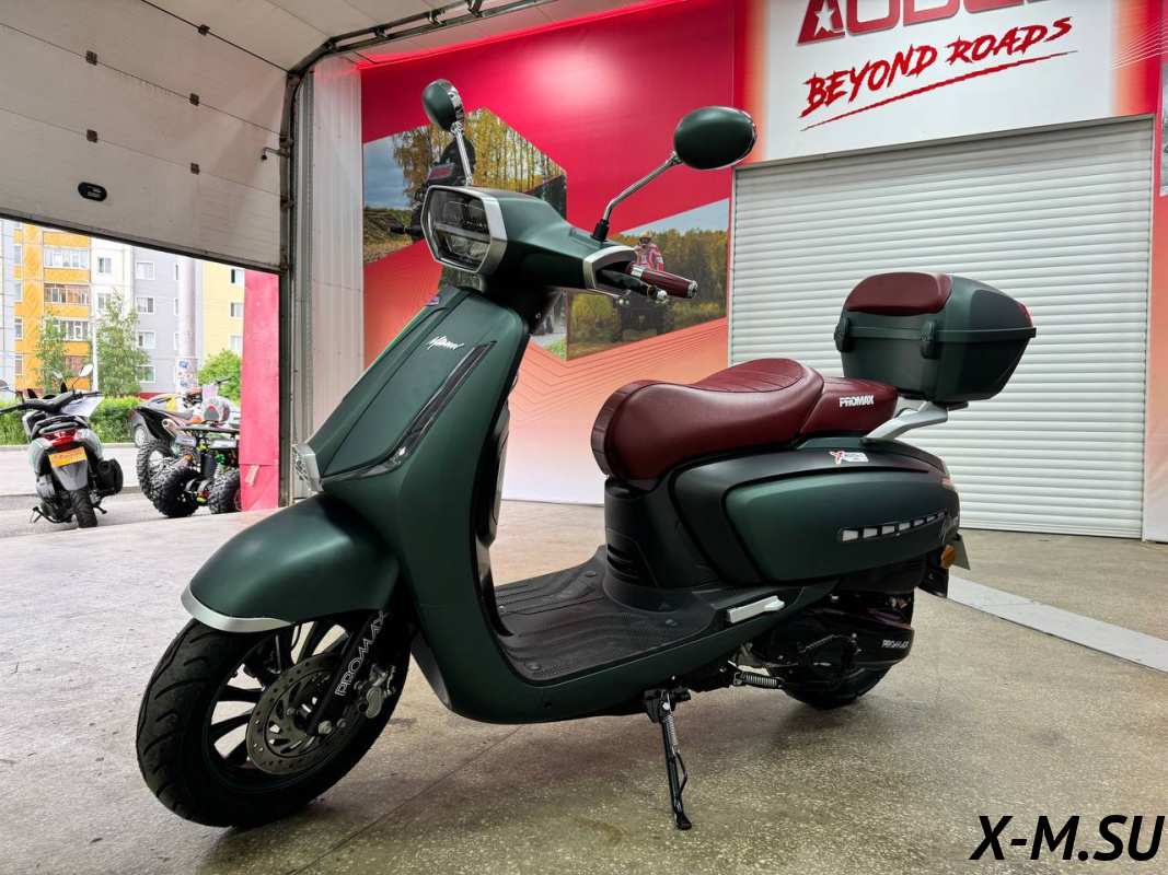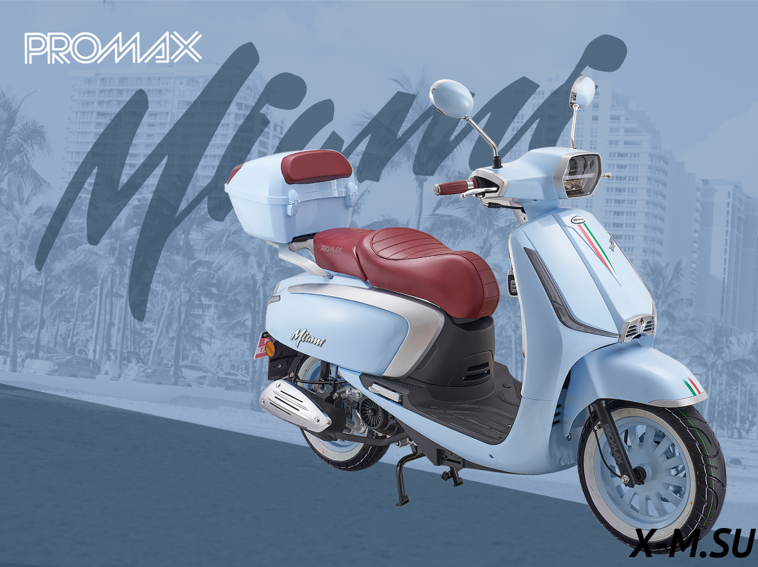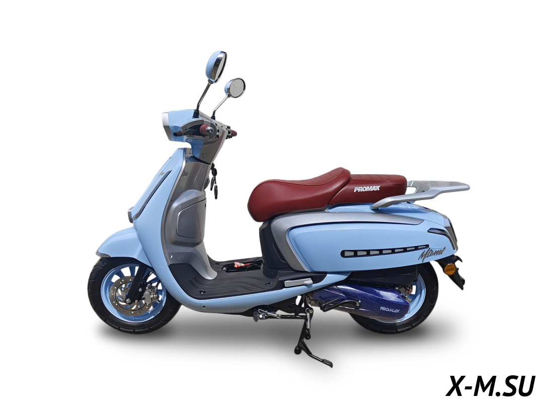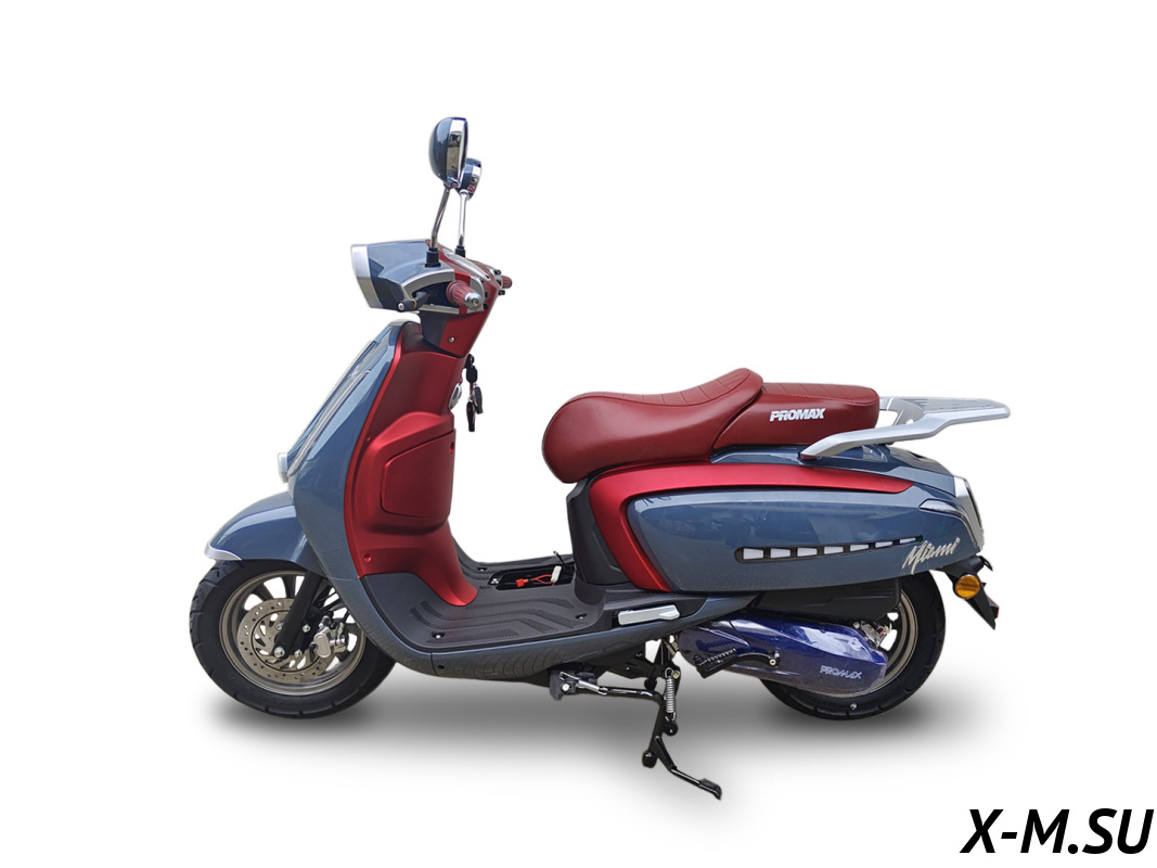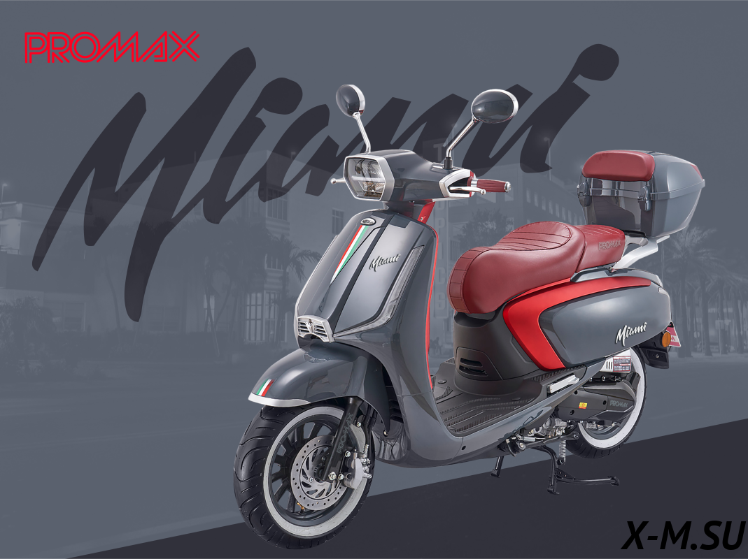 Скутер PROMAX Miami 240 (49) — это просто зверь! Двигатель мощный, разгоняется быстро. Тормоза отличные, гидравлика спереди и сзади. Комплектация богатая, есть всё, что нужно. Единственное, что мне не очень понравилось — это отсутствие ПТС, но в целом скутер отличный.
